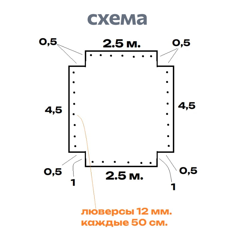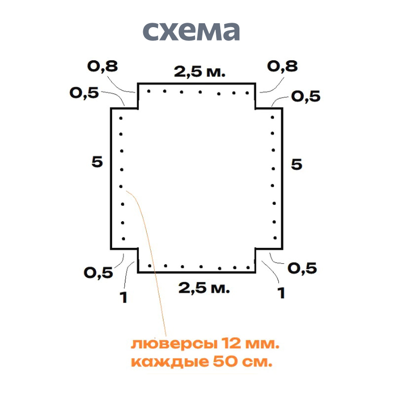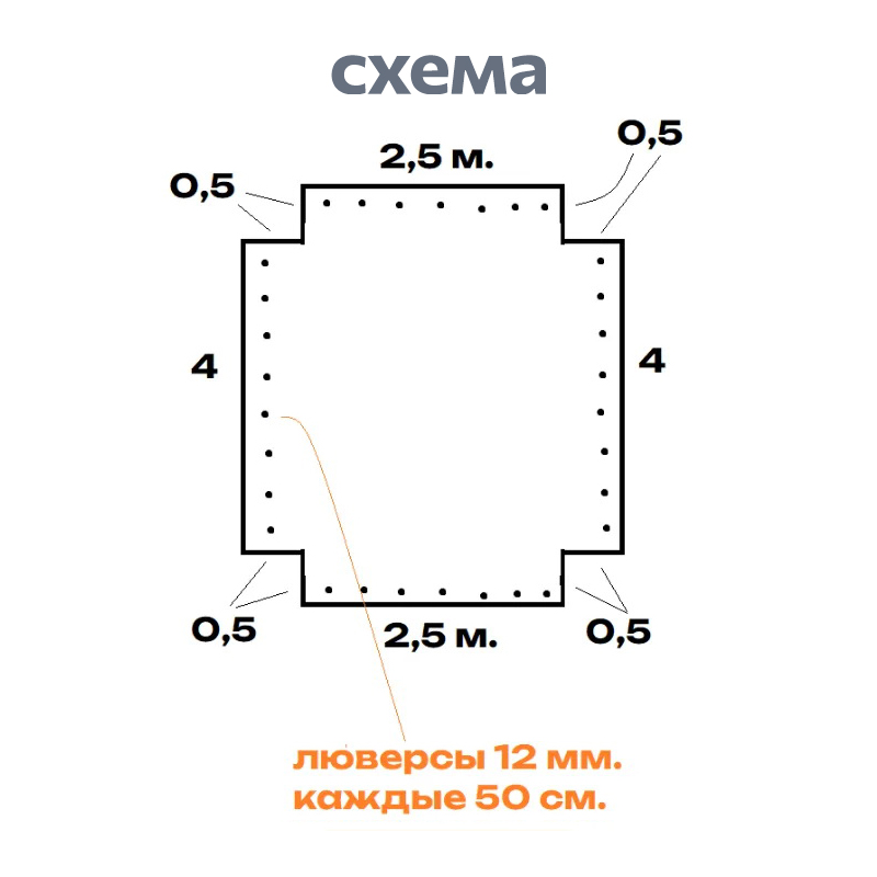 • Люверсы диаметром 12 мм. установлены по двум смежным сторонам
